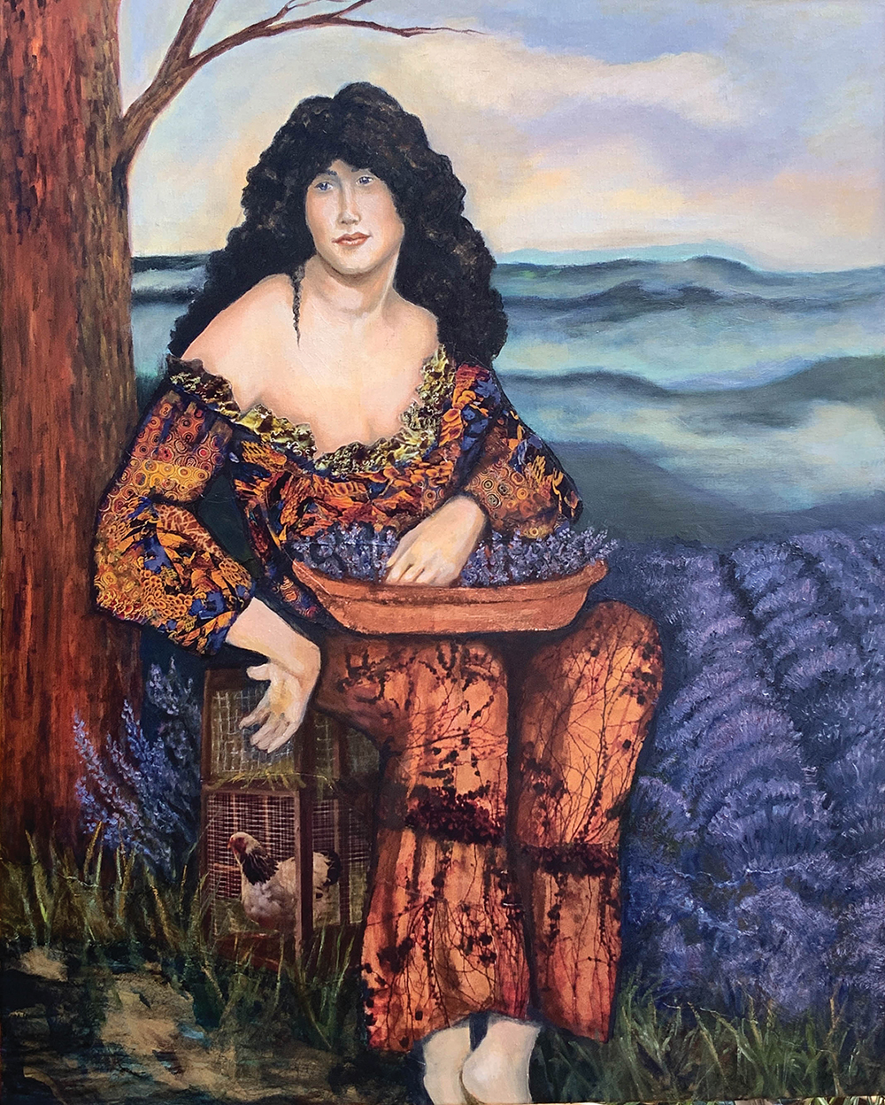 “I realized that my painting was glorifying the most horrible monster,” Brody says. “But it occurred to me that I could use my art to help Salomé see the error of her ways and become a peaceful person.” In Brody’s symbolic interpretation, “Salomé in Appalachia,” the backdrop is the soothing beauty of fog-draped mountains, and freshly harvested lavender fills the wickedly infamous platter, representing a conversion to peace and tranquility.